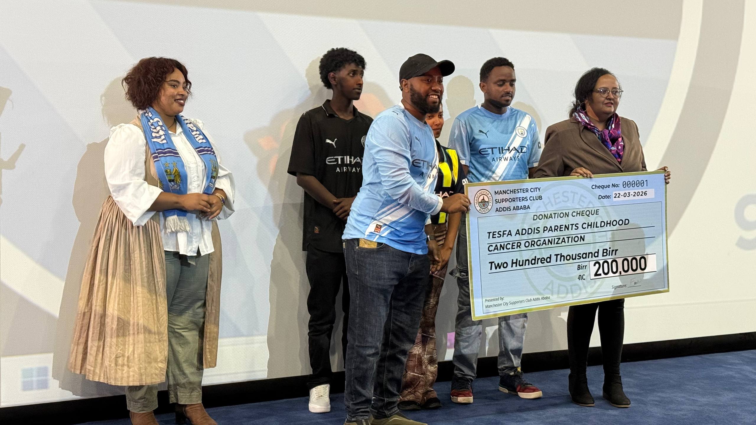 Mancity Addis supporters group members has donated 200,000 birr for children battling against cancer. Thank you all for your generosity and love.